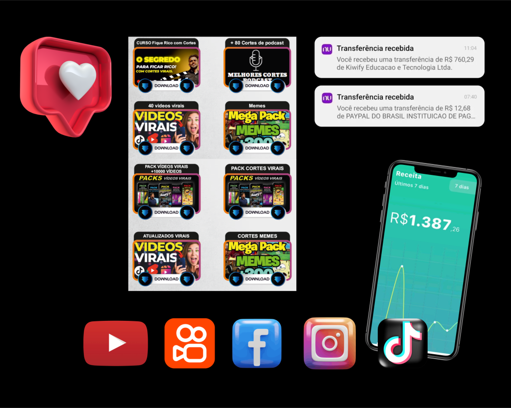 Com mais de 40.000 vídeos prontos, você terá acesso a um dos maiores acervos de conteúdos virais para Instagram, TikTok, Shorts e outras plataformas sem precisar criar nada do zero.